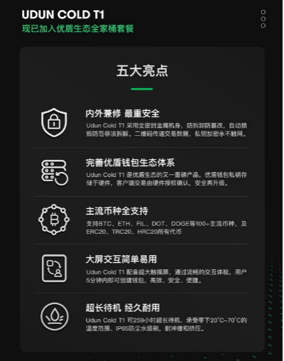 Udun Cold T1的推出意味着,冷、温、热三种企业级数字资产钱包产品将构建起完善的优盾钱包服务板块,为企业用户提供更安全、更便捷、更强大的资产管理服务。